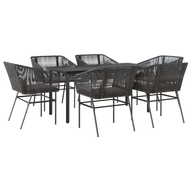 vidaXL Vrtna jedilna garnitura 7-delna z blazinami črn poli ratan