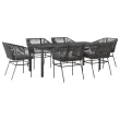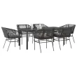 vidaXL Vrtna jedilna garnitura 7-delna z blazinami črn poli ratan