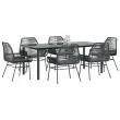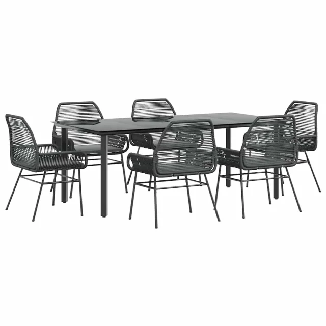 vidaXL Vrtna jedilna garnitura 7-delna z blazinami črn poli ratan