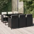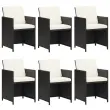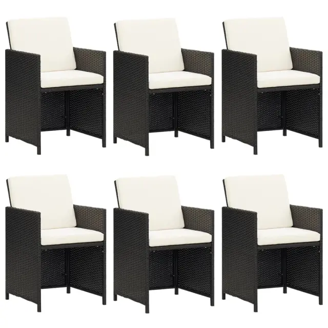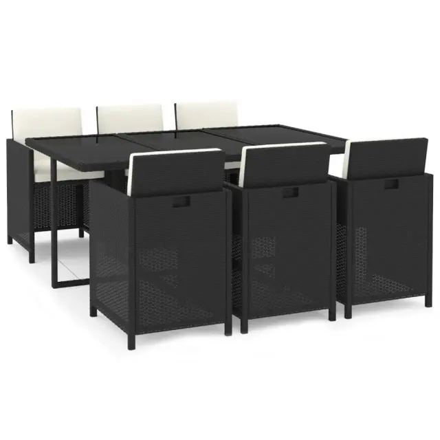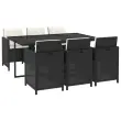 vidaXL Vrtna jedilna garnitura 7-delna z blazinami črna poli ratan