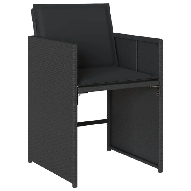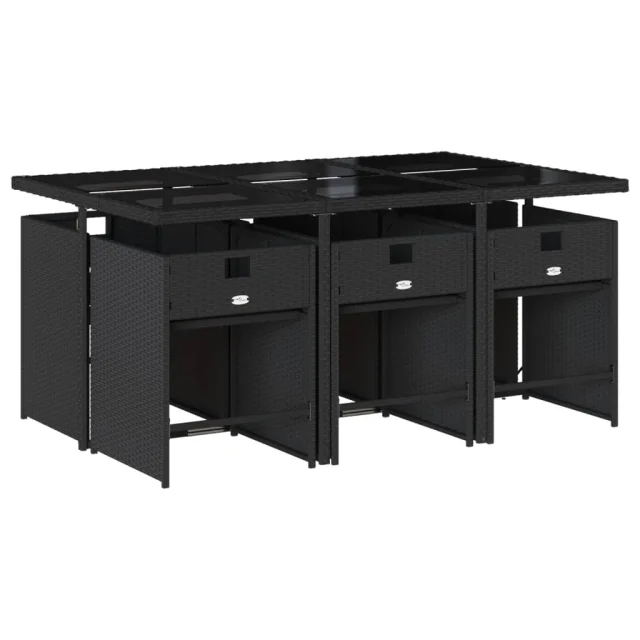 vidaXL Vrtna jedilna garnitura 7-delna z blazinami črna poli ratan