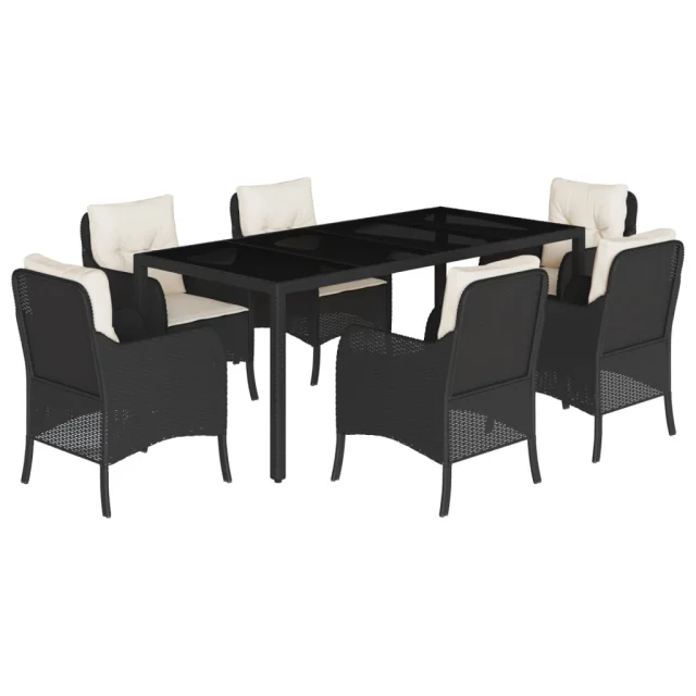 vidaXL Vrtna jedilna garnitura 7-delna z blazinami črna poli ratan