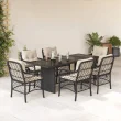 vidaXL Vrtna jedilna garnitura 7-delna z blazinami črna poli ratan
