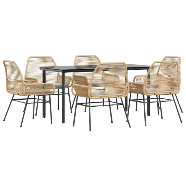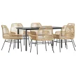 vidaXL Vrtna jedilna garnitura 7-delna z blazinami rjav PE ratan