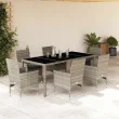 vidaXL Vrtna jedilna garnitura 7-delna z blazinami siv PE ratan steklo