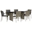 vidaXL Vrtna jedilna garnitura 7-delna z blazinami siv poli ratan
