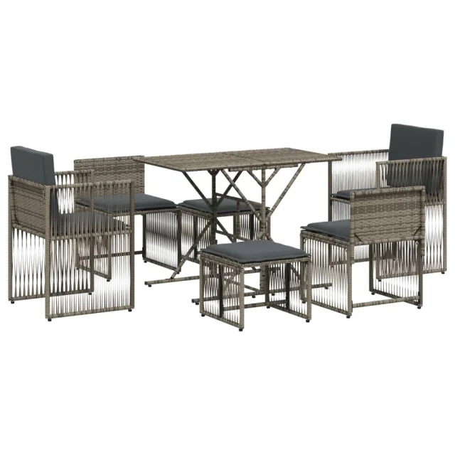 vidaXL Vrtna jedilna garnitura 7-delna z blazinami siv poli ratan