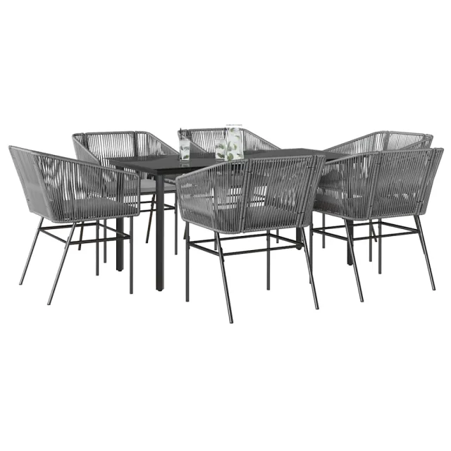 vidaXL Vrtna jedilna garnitura 7-delna z blazinami siv poli ratan