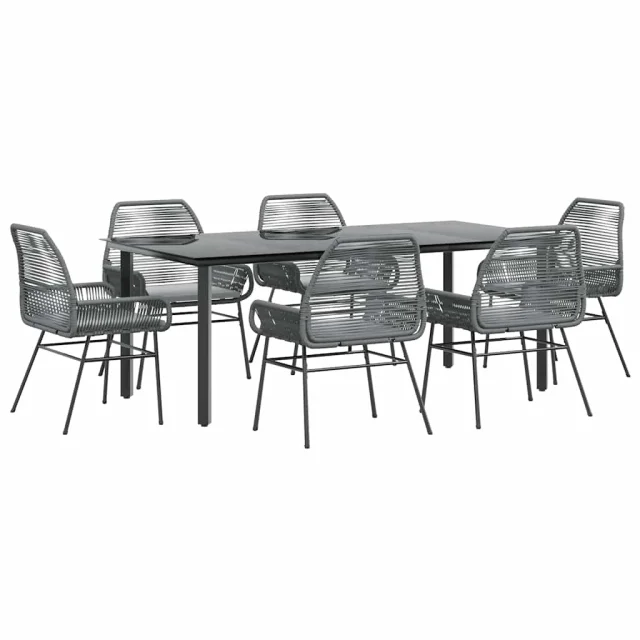vidaXL Vrtna jedilna garnitura 7-delna z blazinami siv poli ratan