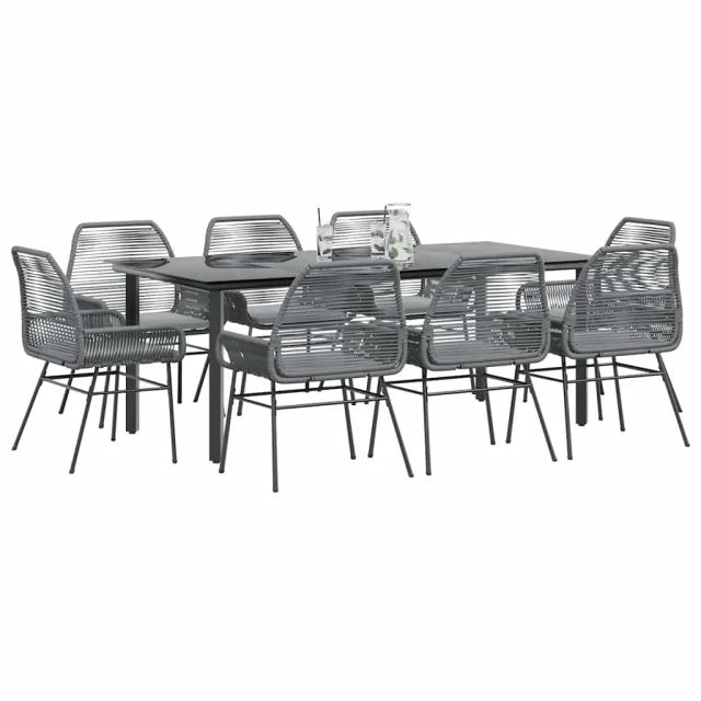 vidaXL Vrtna jedilna garnitura 9-delna blazine siv poli ratan steklo