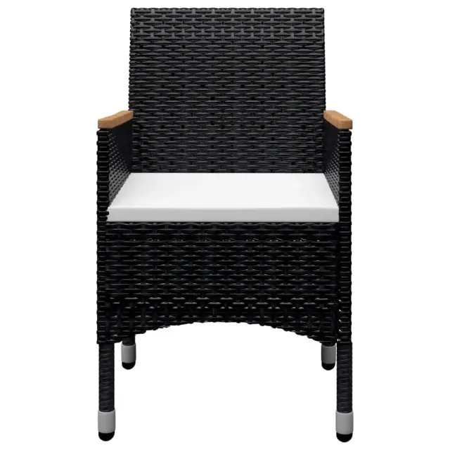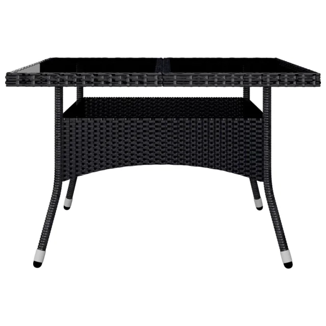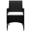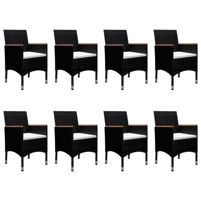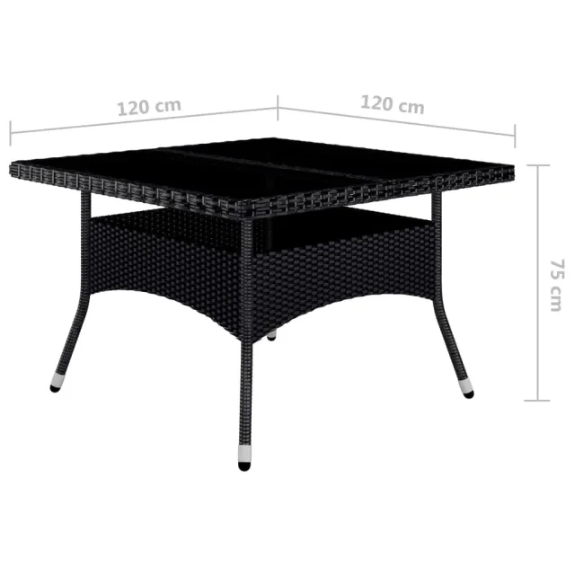 vidaXL Vrtna jedilna garnitura 9-delna poli ratan in steklo črna
