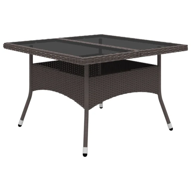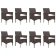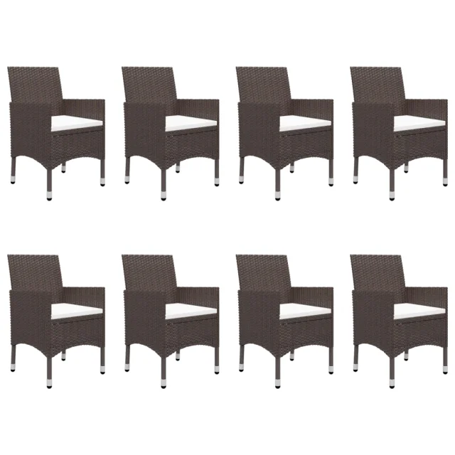 vidaXL Vrtna jedilna garnitura 9-delna poli ratan in steklo rjava