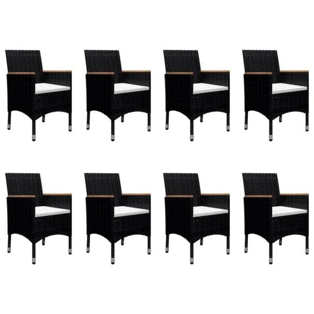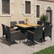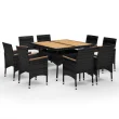 vidaXL Vrtna jedilna garnitura 9-delna poli ratan in trden les črna