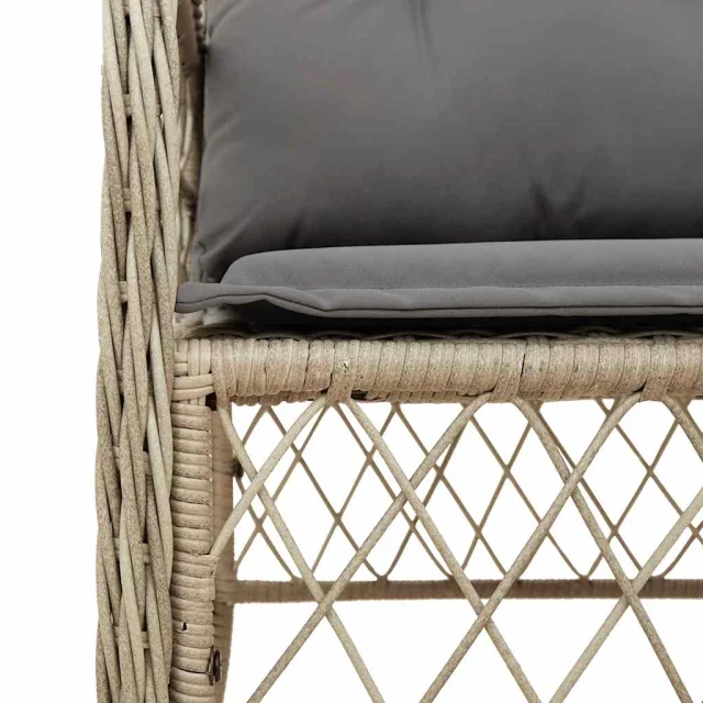• Vzdržljiv material: PE ratan, znan tudi kot poli ratan, je močan sintetični material, ki zahteva malo vzdrževanja in je videti kot naravni ratan. Je lahek, enostaven za čiščenje in se zaradi svoje vzdržljivosti in odpornosti na vremenske vplive pogosto uporablja za zunanje pohištvo.