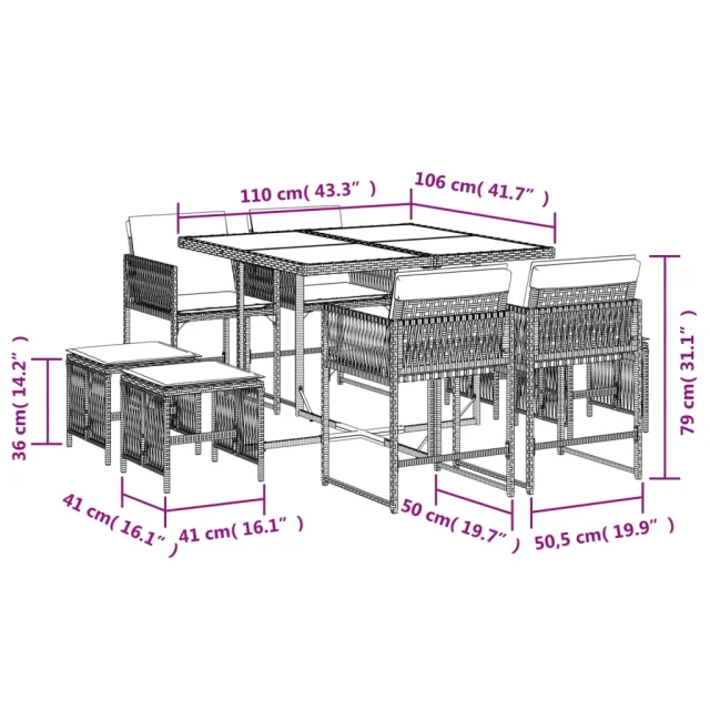 Ta vrtna jedilna garnitura je odlična izbira za večerjo na prostem ali za sprostitev na vrtu, dvorišču ali terasi.