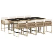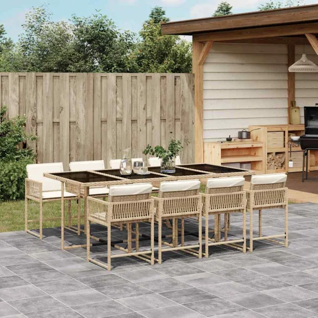 vidaXL Vrtna jedilna garnitura 9-delna z blazinami bež poli ratan