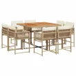 vidaXL Vrtna jedilna garnitura 9-delna z blazinami bež poli ratan