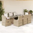 vidaXL Vrtna jedilna garnitura 9-delna z blazinami bež poli ratan