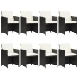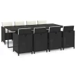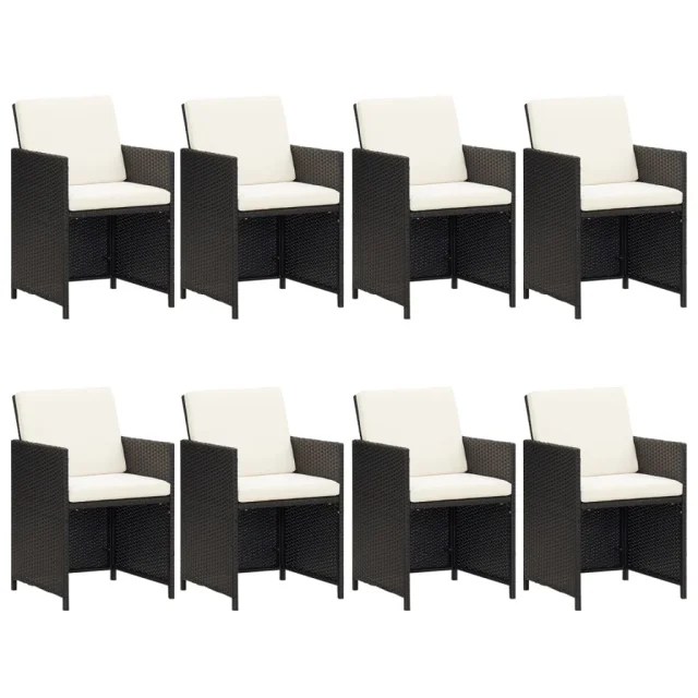 vidaXL Vrtna jedilna garnitura 9-delna z blazinami črn poli ratan