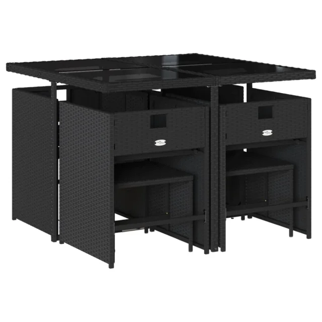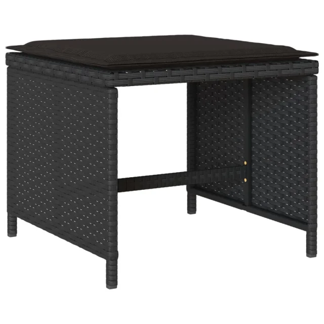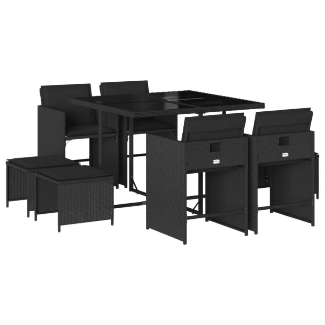vidaXL Vrtna jedilna garnitura 9-delna z blazinami črn poli ratan