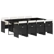 vidaXL Vrtna jedilna garnitura 9-delna z blazinami črn poli ratan