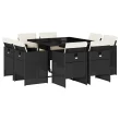 vidaXL Vrtna jedilna garnitura 9-delna z blazinami črn poli ratan