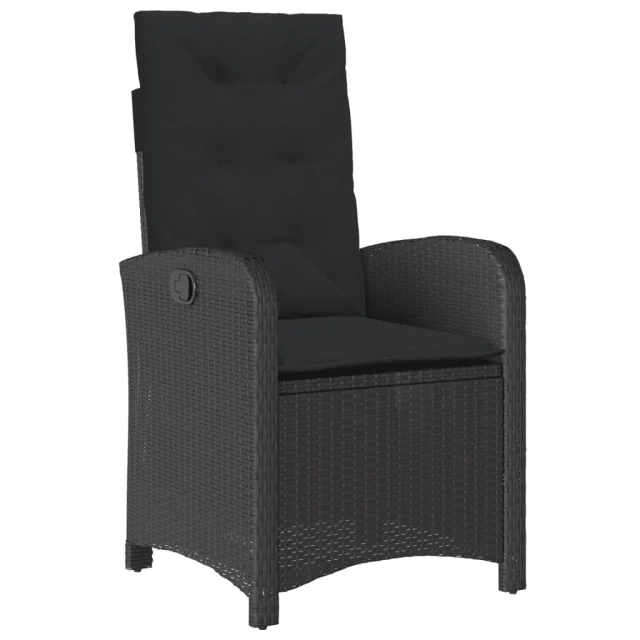 vidaXL Vrtna jedilna garnitura 9-delna z blazinami črn poli ratan