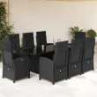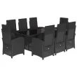 vidaXL Vrtna jedilna garnitura 9-delna z blazinami črn poli ratan