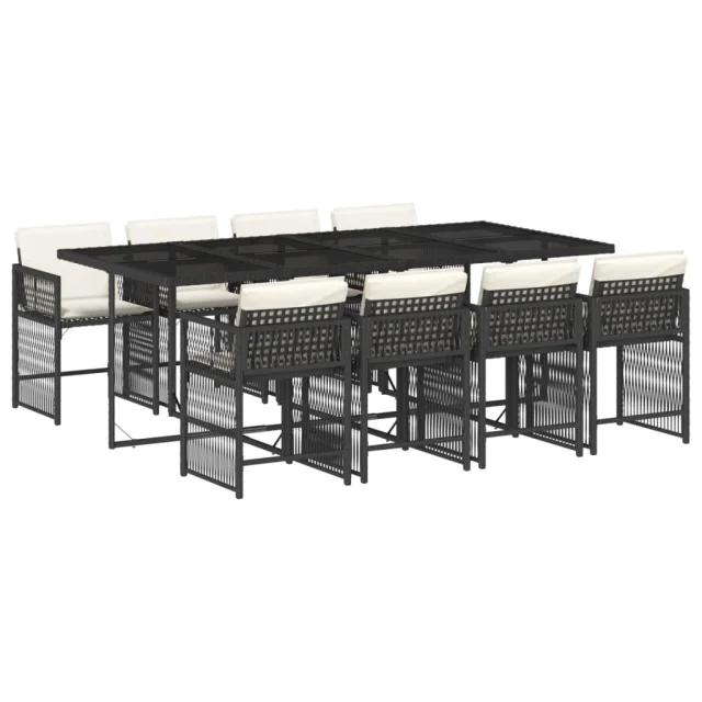 vidaXL Vrtna jedilna garnitura 9-delna z blazinami črn poli ratan