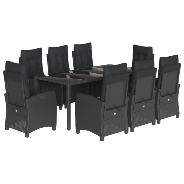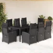 vidaXL Vrtna jedilna garnitura 9-delna z blazinami črn poli ratan