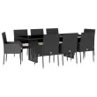 vidaXL Vrtna jedilna garnitura 9-delna z blazinami črn poli ratan