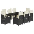 vidaXL Vrtna jedilna garnitura 9-delna z blazinami črn poli ratan