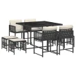 vidaXL Vrtna jedilna garnitura 9-delna z blazinami črn poli ratan