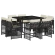 vidaXL Vrtna jedilna garnitura 9-delna z blazinami črn poli ratan