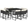 vidaXL Vrtna jedilna garnitura 9-delna z blazinami črn poli ratan