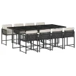 vidaXL Vrtna jedilna garnitura 9-delna z blazinami črn poli ratan