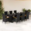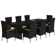 vidaXL Vrtna jedilna garnitura 9-delna z blazinami črn poli ratan