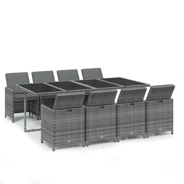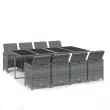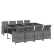vidaXL Vrtna jedilna garnitura 9-delna z blazinami poli ratan siva