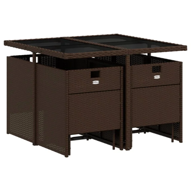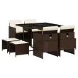 vidaXL Vrtna jedilna garnitura 9-delna z blazinami rjav poli ratan