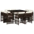 vidaXL Vrtna jedilna garnitura 9-delna z blazinami rjav poli ratan