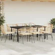 • Steklena mizna plošča: Površina zunanje mize je izdelana iz močnega in trpežnega kaljenega stekla, kar omogoča enostavno čiščenje z vlažno krpo in vašemu zunanjemu prostoru doda pridih elegance.
