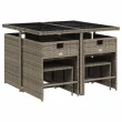 vidaXL Vrtna jedilna garnitura 9-delna z blazinami siv poli ratan