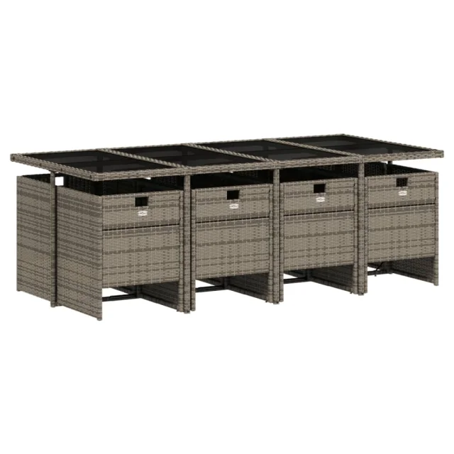 vidaXL Vrtna jedilna garnitura 9-delna z blazinami siv poli ratan