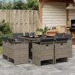 vidaXL Vrtna jedilna garnitura 9-delna z blazinami siv poli ratan
