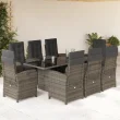 vidaXL Vrtna jedilna garnitura 9-delna z blazinami siv poli ratan