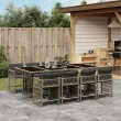 vidaXL Vrtna jedilna garnitura 9-delna z blazinami siv poli ratan