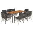 vidaXL Vrtna jedilna garnitura 9-delna z blazinami siv poli ratan