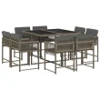 vidaXL Vrtna jedilna garnitura 9-delna z blazinami siv poli ratan