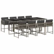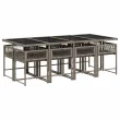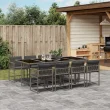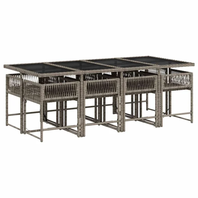 vidaXL Vrtna jedilna garnitura 9-delna z blazinami siv poli ratan