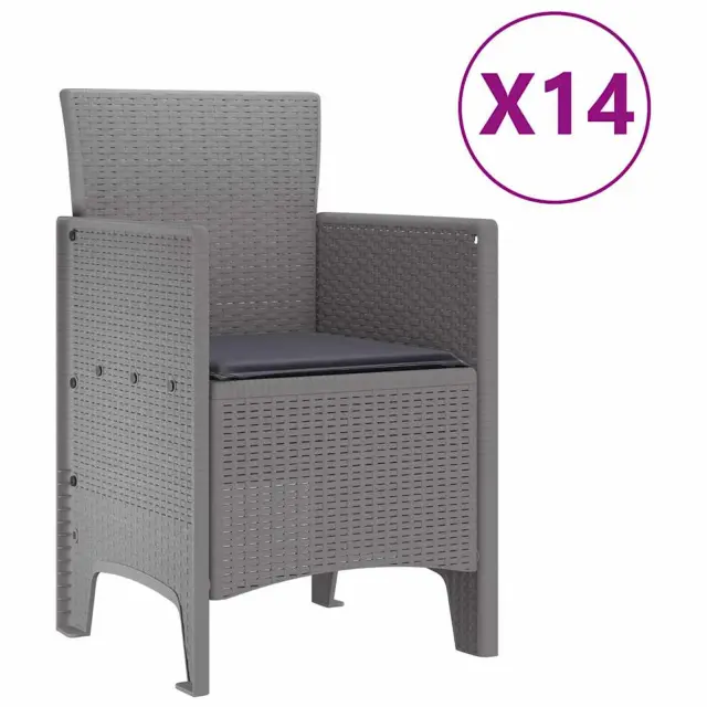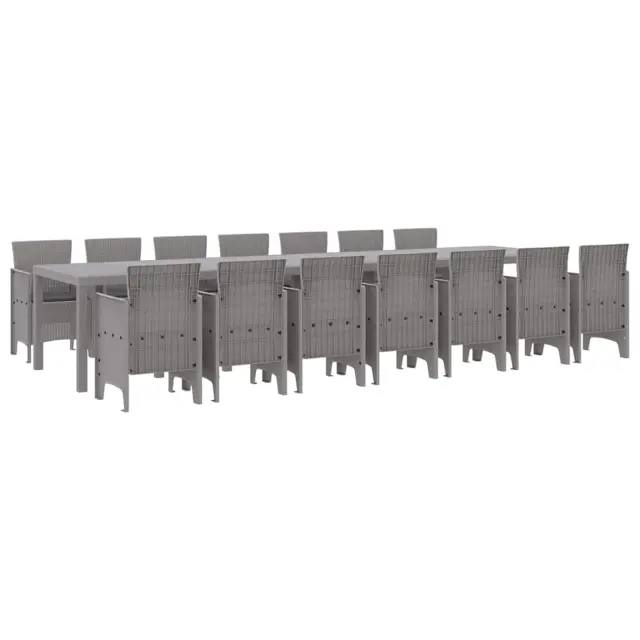 vidaXL Vrtna jedilna garnitura s blazinami 15 pcs Svetlo siva PP